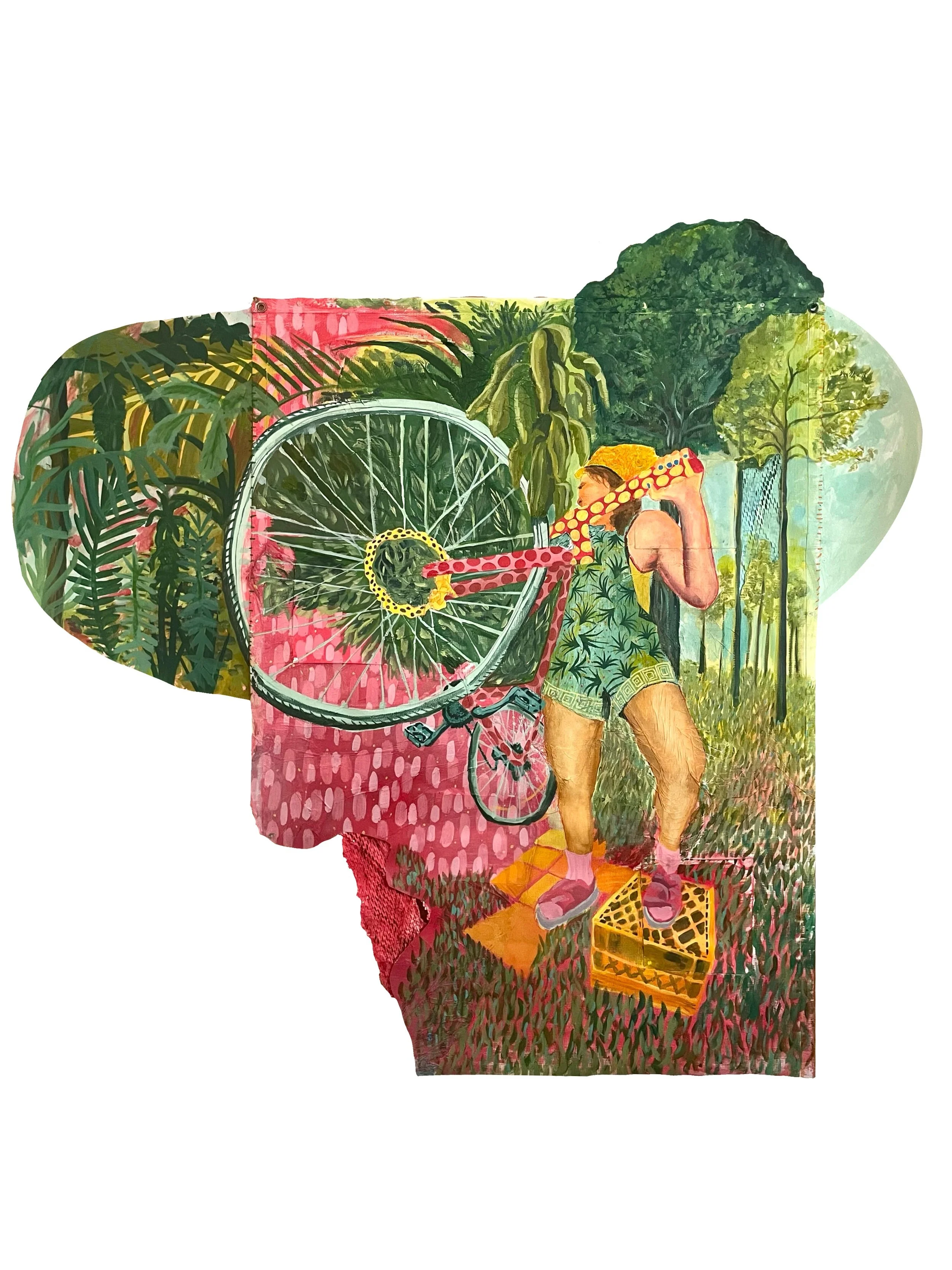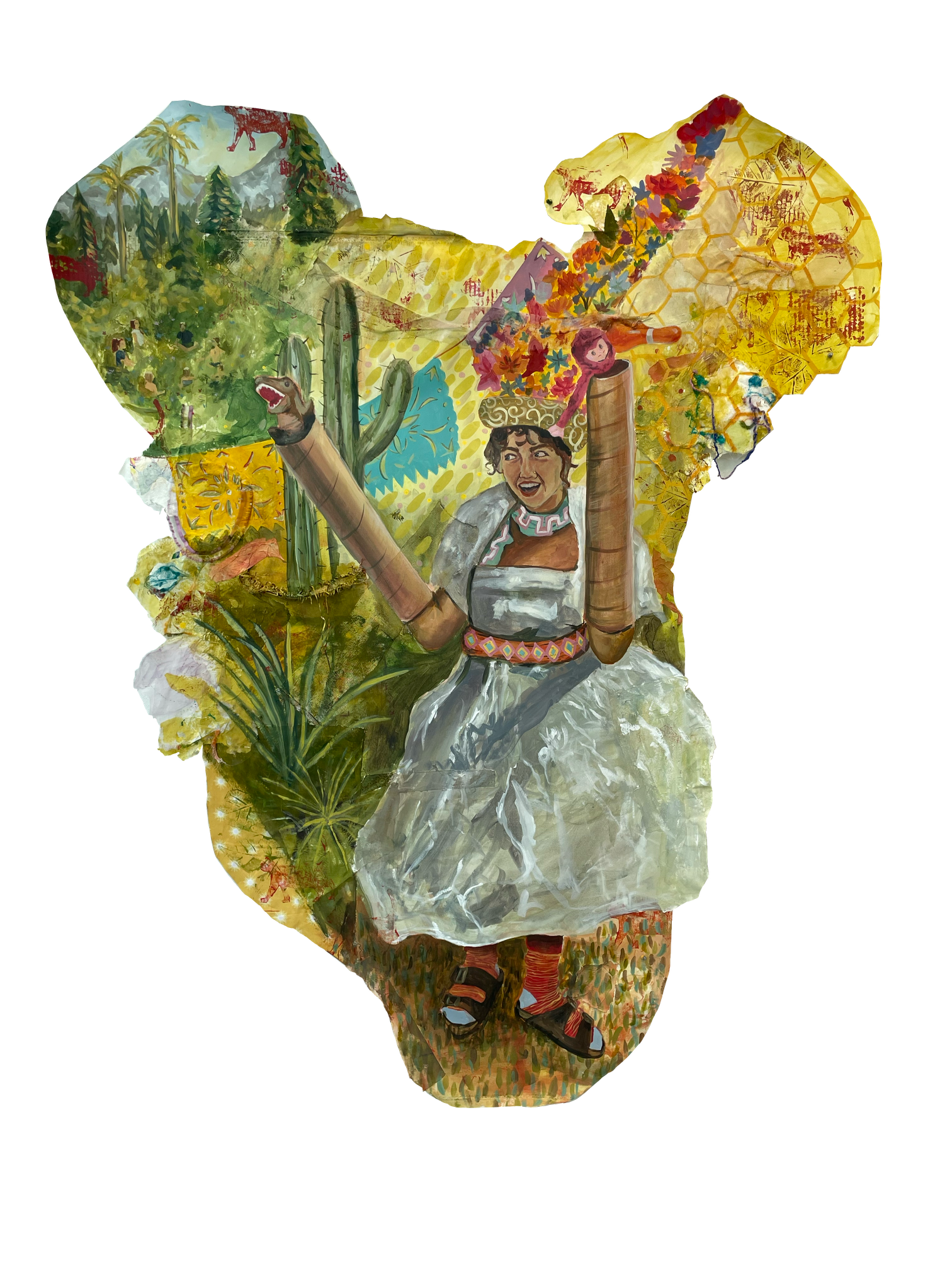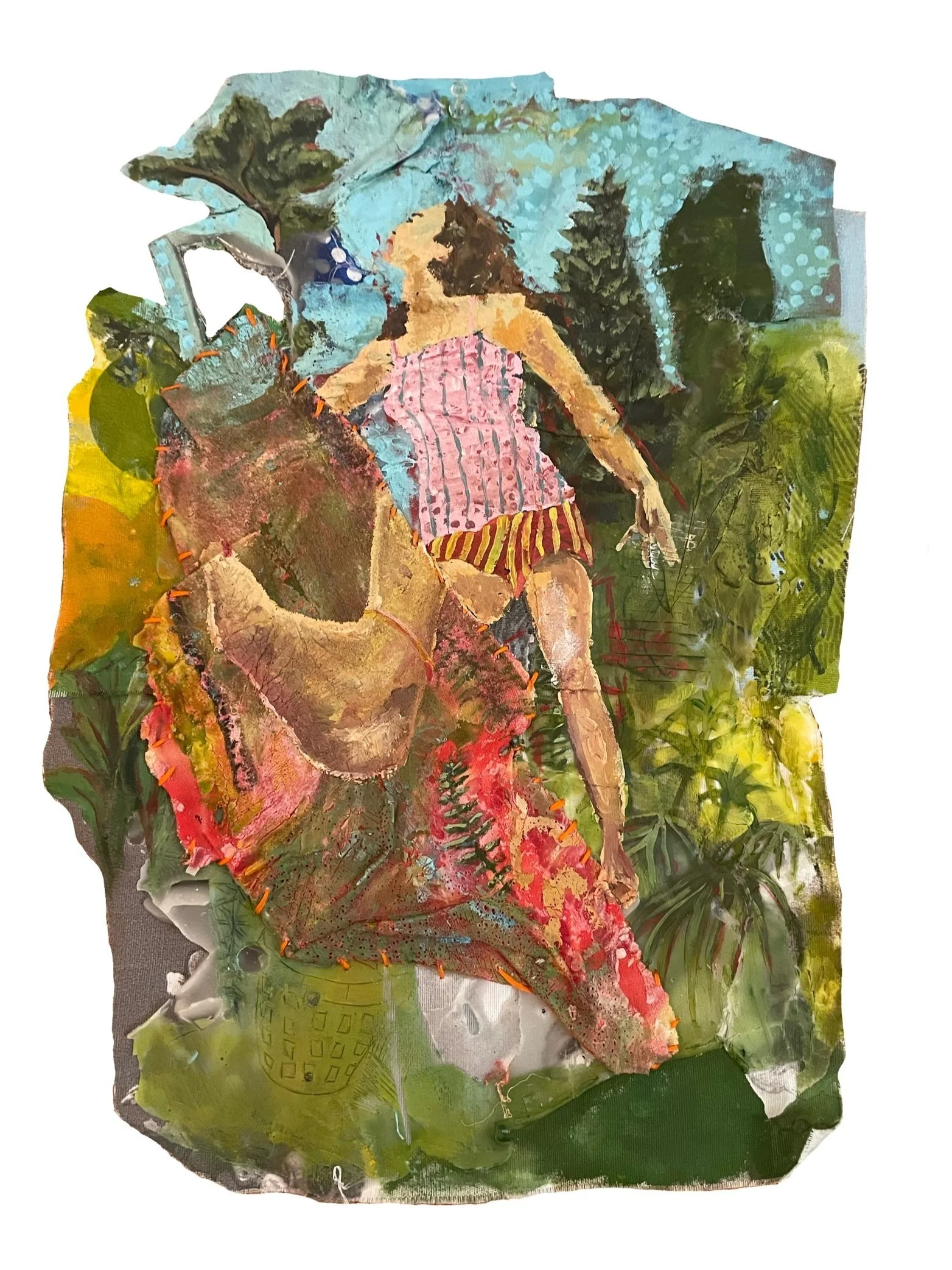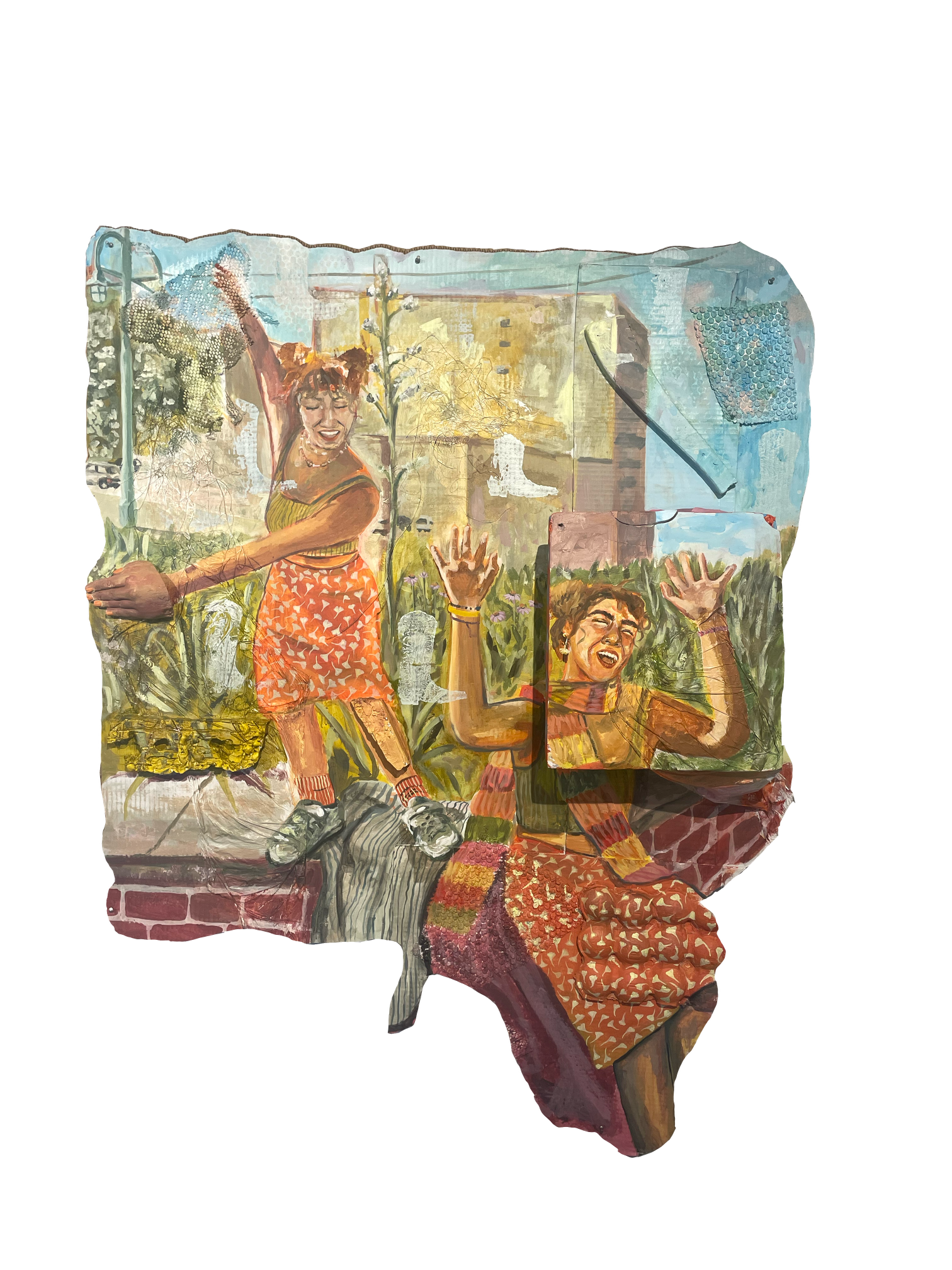 Acrylic, paper, cardboard, curtain drapes, charcoal, and a old PenPal letter