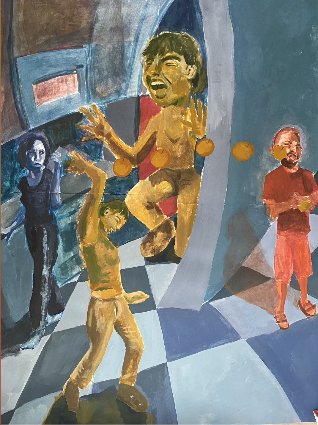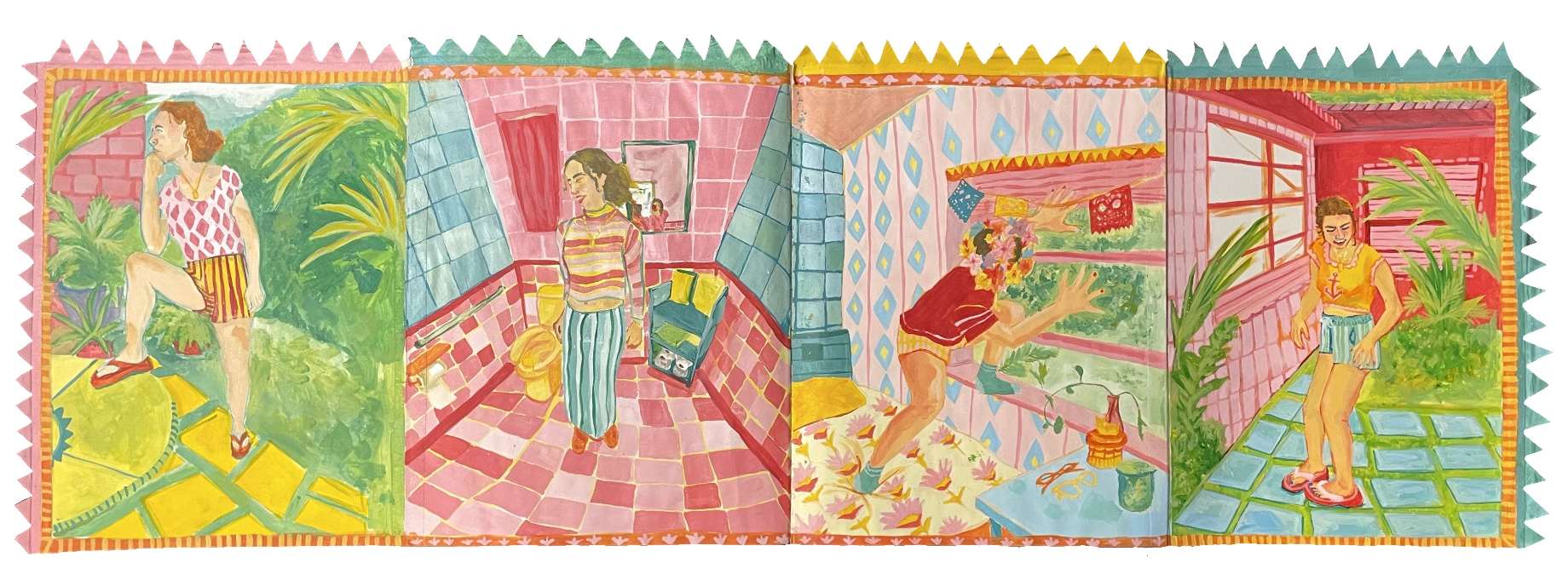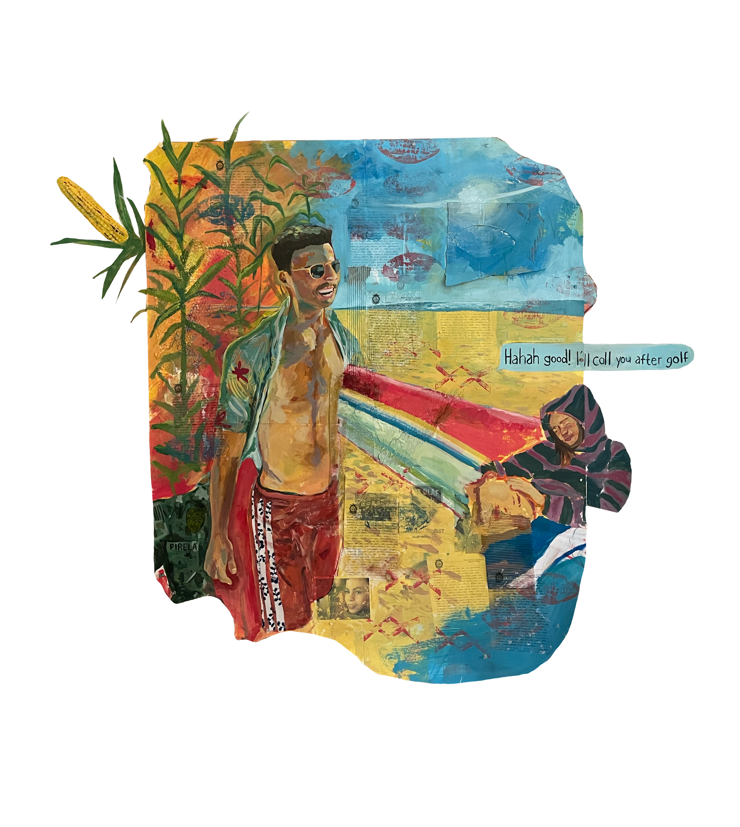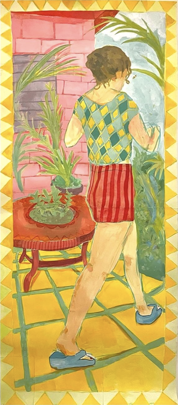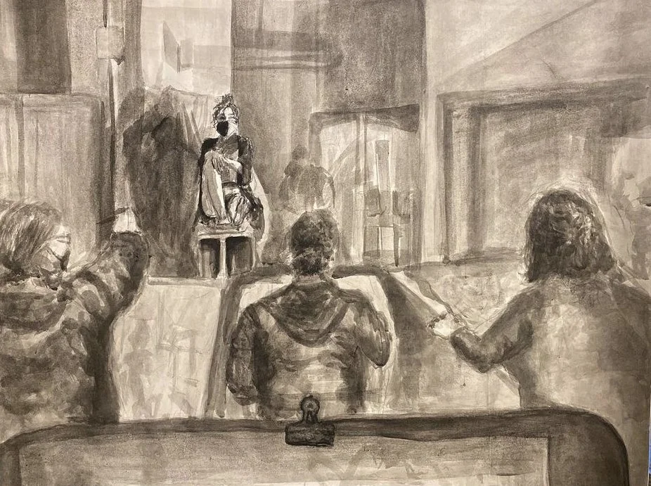 Acrylic, paper, cardboard, curtain drapes, charcoal, and a old PenPal letter